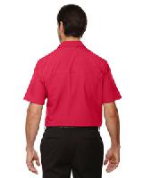 North End Sport (R) Charge men's recycled polyester performance short sleeve shirt. You're in charge and it shows in this great fitting recycled polyester woven shirt with moisture wicking performance and a stylish modern fit. Indoors or out, this shirt will meet your service, event or uniform needs. Features textured ripstop with mechanical stretch, structured collar stand, stylized front and back yokes, heat seal label and right chest concealed zippered pocket.