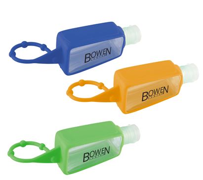 This is an alcohol-based, 1-oz. (30ml) hand sanitizer in a squeeze bottle with flip-top lid. It has a 62% alcohol content. The silicone holder also functions as adjustable travel attachment. This product meets FDA requirements.