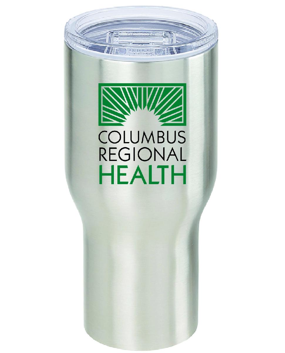 Stainless Steel, vacuum insulated, double wall construction. 8.25” tall. Hand Wash Only.