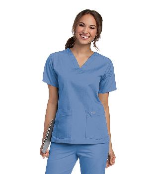 A classic that comes in almost every color and print you can imagine--good luck deciding! V-neck with set-in sleeves and four pockets with pencil/instrument division. Four-inch side vents. 65% Polyester/ 35% Combed Cotton Medium length: 26 7/8"