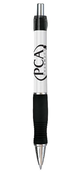 Medium point ballpoint pen with gel ink and white barrel. Black ink is standard. Tungsten carbide ball. Based on the imprint size per product we will do our best to include your campus logo, web url and phone number. A proof will be provided for your approval.