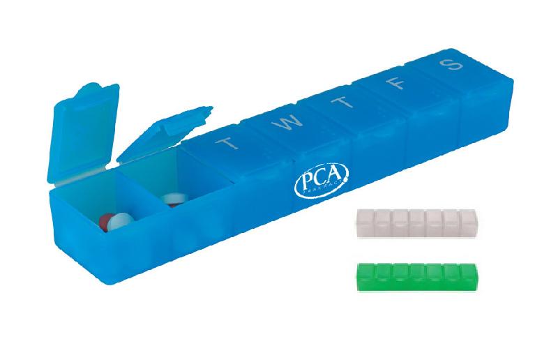 Raise your hand if you want one! This seven day pill case holds a week's worth of pills. Each day of the week features a raised storage compartment design with Braille writing as well. Choose from the vivid color options, have your company name or logo imprinted and use as a tradeshow giveaway. This American made medicinal accessory is ideal for promoting pharmacies, hospitals, research labs and more. Great for assisted living facilities too! Based on the imprint size per product we will do our best to include your campus logo, web url and phone number. A proof will be provided for your approval.