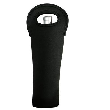 Made of the same material as wetsuits, this durable tote insulates and protects your wine bottle at the right temperature while preventing breakage. An integrated handle makes for easy transport. | 100% neoprene with a polyester shell For best results, silk screen or heat transfer only. Dimensions: 15.75'h x 5.5'w Note: Bags not intended for use by children 12 and under. Includes a California Prop 65 and social responsibility hangtag .