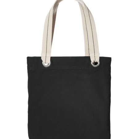 Shopping commuting or sightseeing Allie is your companion. Contrast lining striped handles and large metal grommets add a touch of whimsy to this casual tote. The open-top design offers easy access. An interior zippered pocket keeps small essentials secure. 14-ounce 100% garment-washed* cotton canvas Webbing handles Dimensions: 15.75 h x 13.25 w x 3.5 d Approx. 730 cubic inches *Due to special finishing process color and distress may vary. Note: Bags not intended for use by children 12 and under. Includes a California Prop 65 and social responsibility hangtag.
