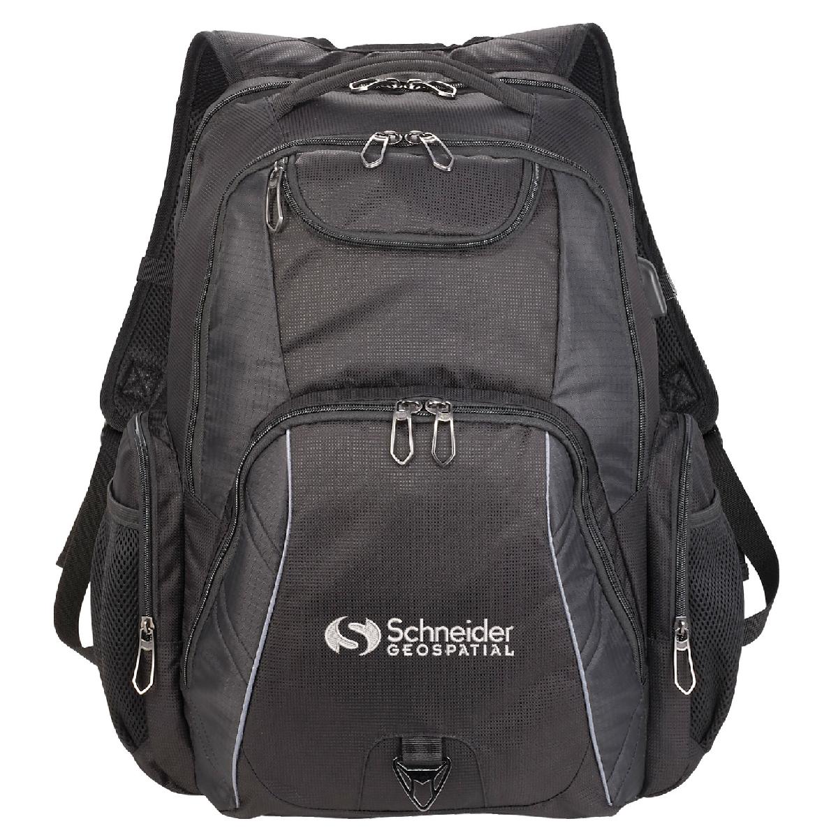 The Rainier TSA 17" Computer Backpack features a large zippered main compartment that offers ample room for all of your tech accessories and tablets. Main compartment has built in USB port and cable which allows for seamless charging capabilities of your tech products inside the backpack. Includes a 17 inch TSA computer compartment that unfolds to lay flat on the X-ray belt to increase speed through security. Additional storage on the front panel of the bag include a deluxe organizational panel, easy access top pocket compartment and two zippered side pockets with mesh water bottle pockets. Custom zipper pullers, padded back panel, chest strap and trolley sleeve.