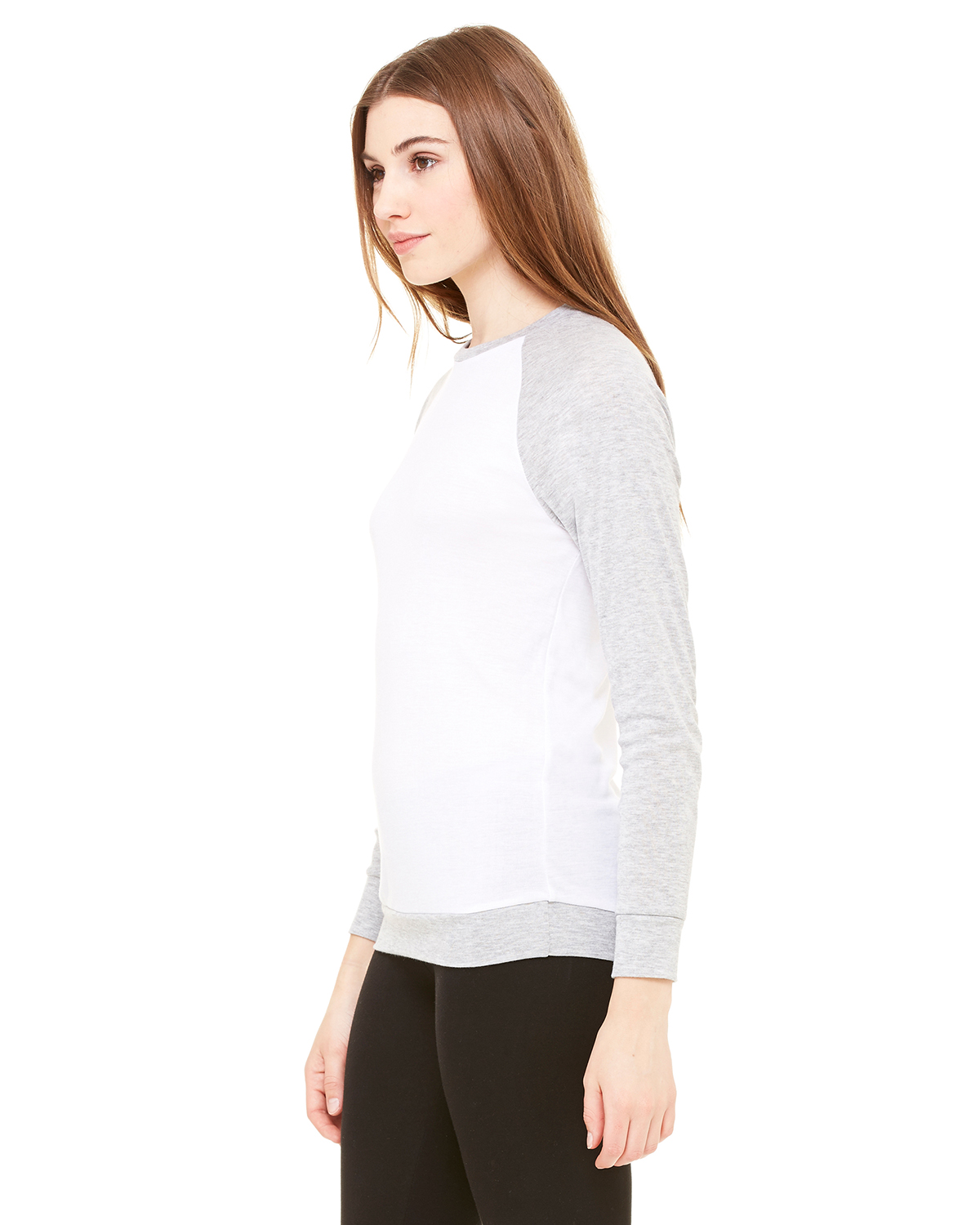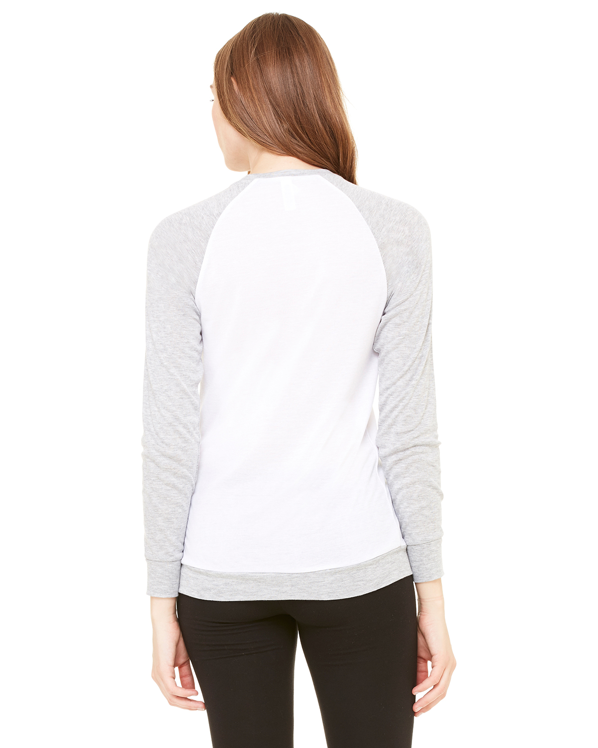 5.3 oz., 65% polyester, 35% viscose; Athletic Heather is 52% polyester, 48% viscose; retail fit; unisex sizing; 1x1 smooth ribbed fabric uwith a flat surface ideal for printing; raglan sleeves; sideseamed;